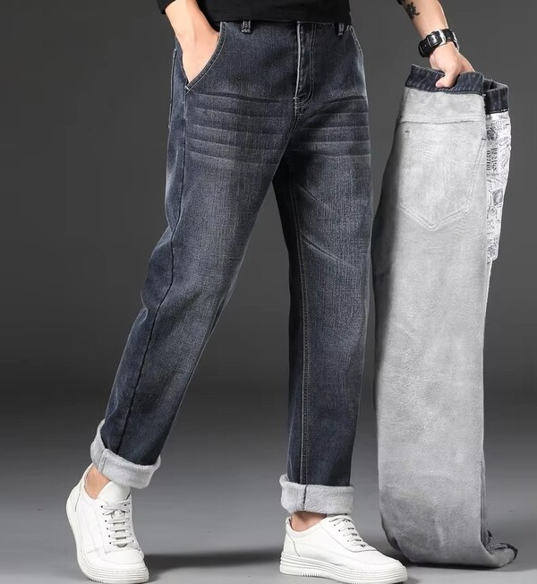 3Pcs Mens Winter Warm Fleece Jeans