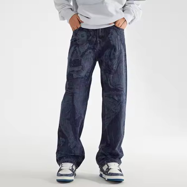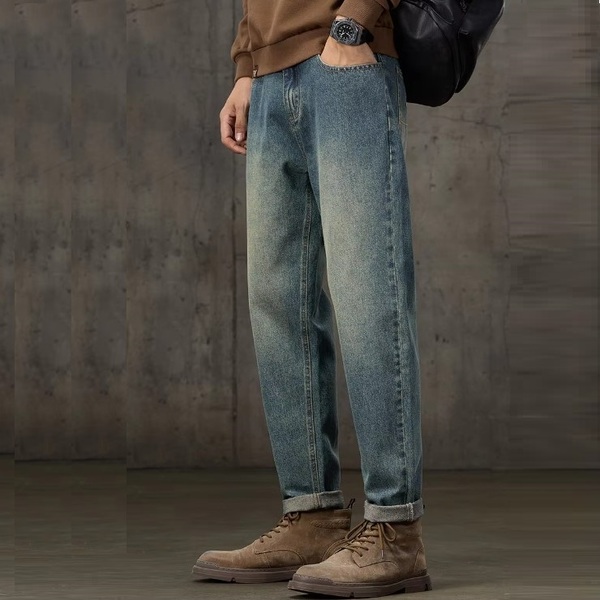Mens Straight Leg Loose Denim Jeans with Five Pockets