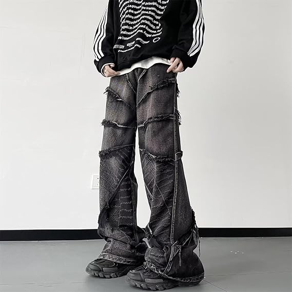 3Pcs Mens Baggy Hip Hop Stacked Jeans Streetwear